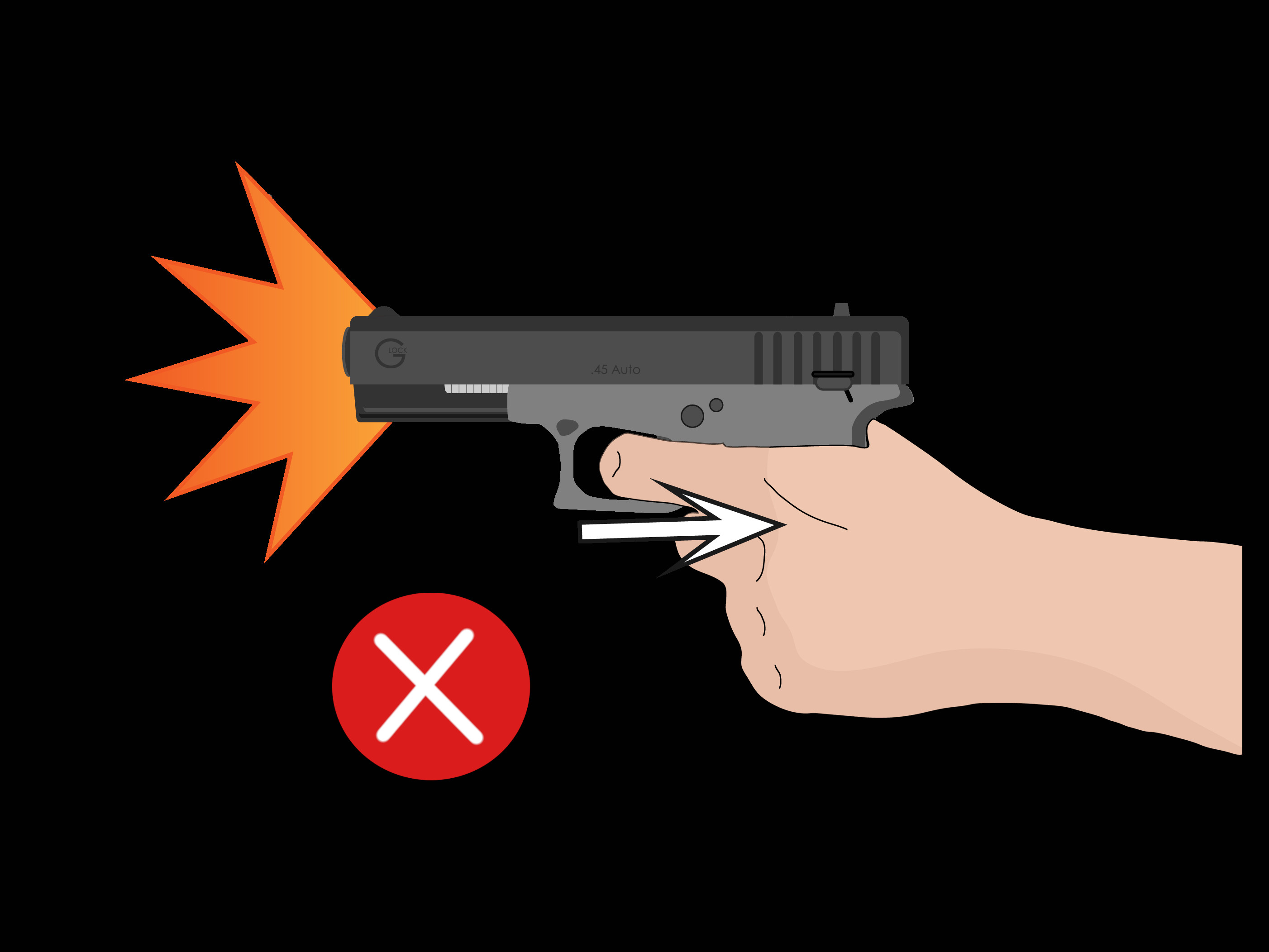 Keep your finger out of the trigger guard and HIGH resting on the side of the slide.